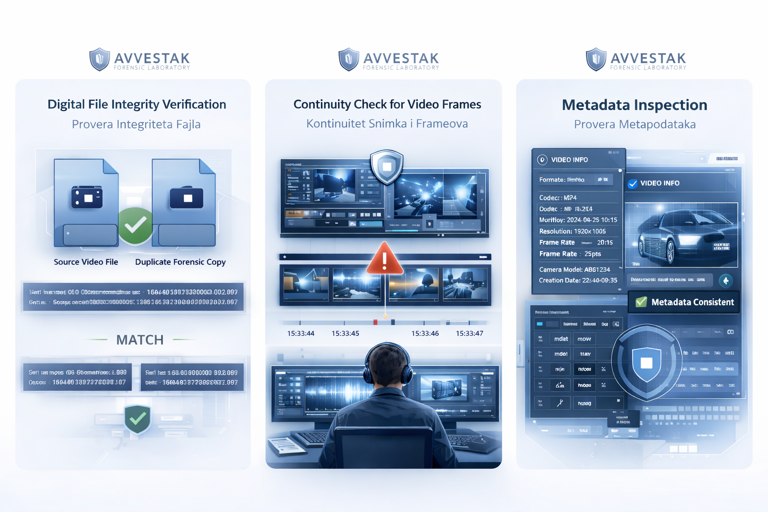 - Provera metapodataka: Digitalni tragovi (vreme, datum, format) su ključni za potvrdu da snimak nije menjan.